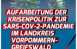Fragen wurden von der AfD-Fraktion im Ausschuss für Familie, Soziales und Gesundheit im Rahmen der Aufarbeitung der Krisenpolitik zur SARS-CoV-2-Pandemie im Landkreis Vorpommern-Greifswald gestellt. Der Landkreis hat während der Pandemie verschiedene Maßnahmen und Allgemeinverfügungen [...]